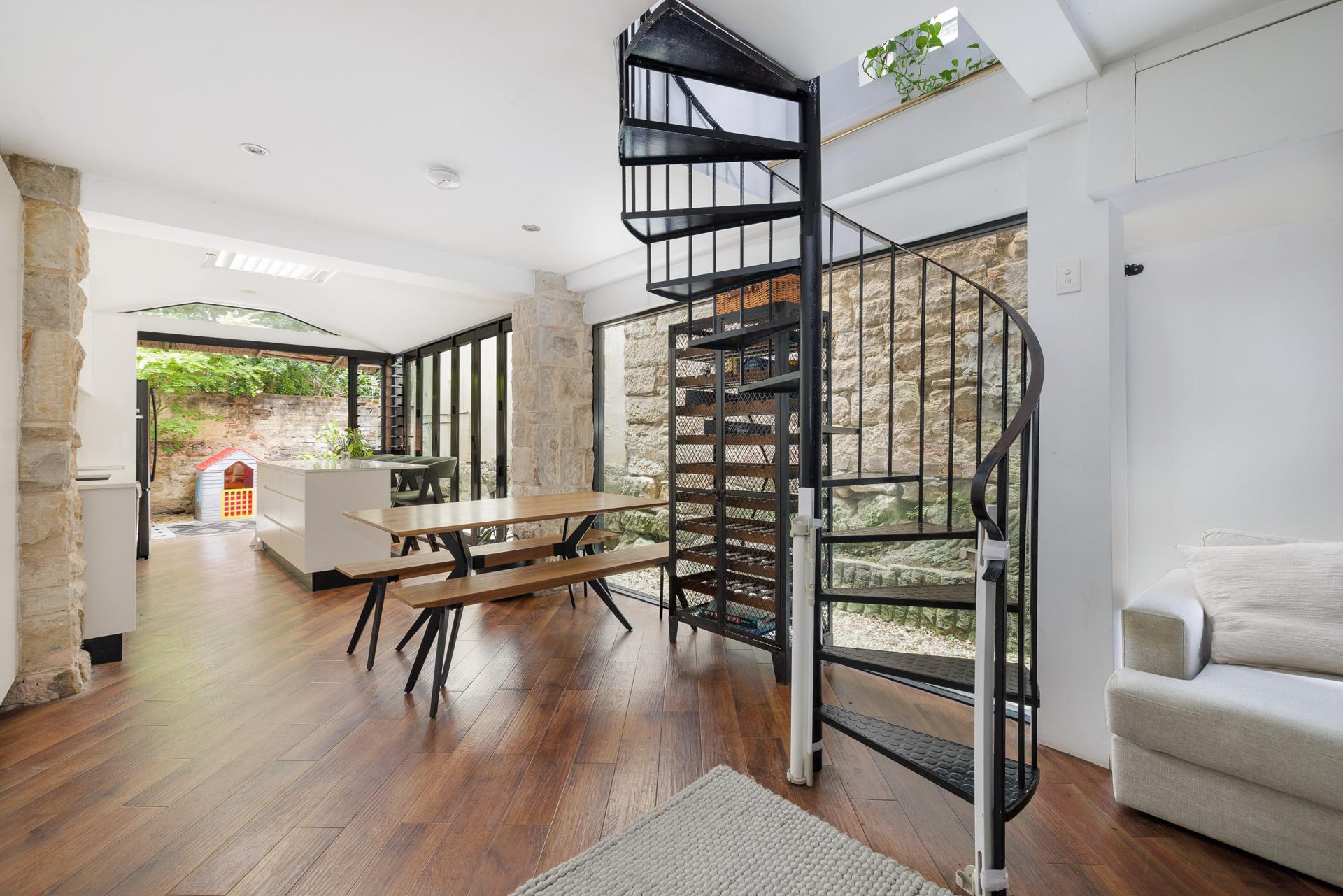 Clean lines, rustic sandstone, wall-to-wall glass and a black spiral staircase create a striking mix in this peninsula terrace. Tucked down a peaceful one-way street, it’s steps to Mansfield Street with its popular bakery, coffee roasters and creative businesses, and White Bay just beyond. There’s plenty of liveability now plus potential to further update in one of the area’s most evolving pockets, so close to Anzac Bridge and the city.
