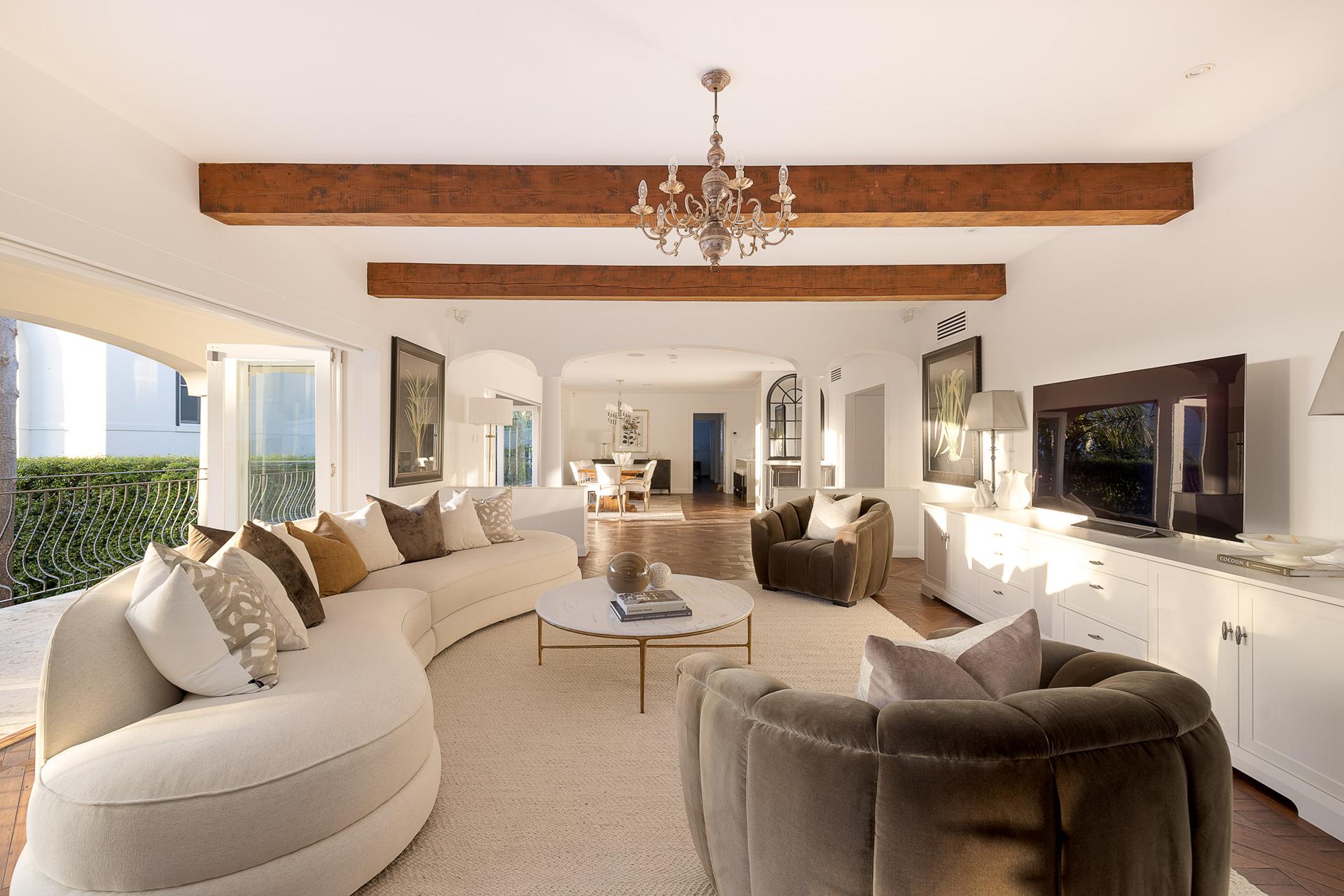 A statement in scale and sophistication, this Mediterranean-inspired residence has been transformed into a luxurious contemporary retreat of quality, privacy and spanning three substantial levels. It combines grand proportions with multiple living zones and seamless indoor-outdoor connection, designed for both family relaxation and large-scale entertaining. Bathed in north-east light with an elevated position at the exclusive end of Alexandra Street, the home captures magnificent district and Harbour Bridge views from its wide entertaining terraces. Along with beautifully manicured gardens, refined craftsmanship and a timeless architectural sensibility. It offers an exceptional lifestyle on the Hunters Hill peninsula, moments to the village shops, cafes, ferry and city transport.
