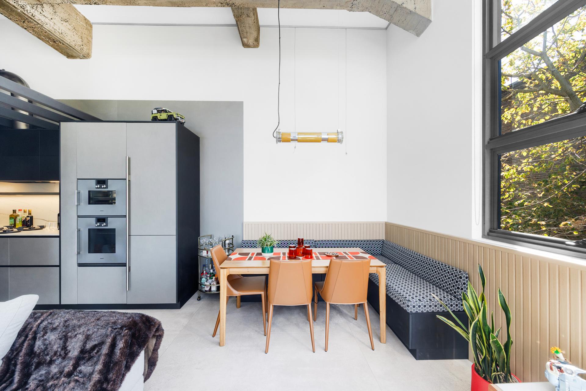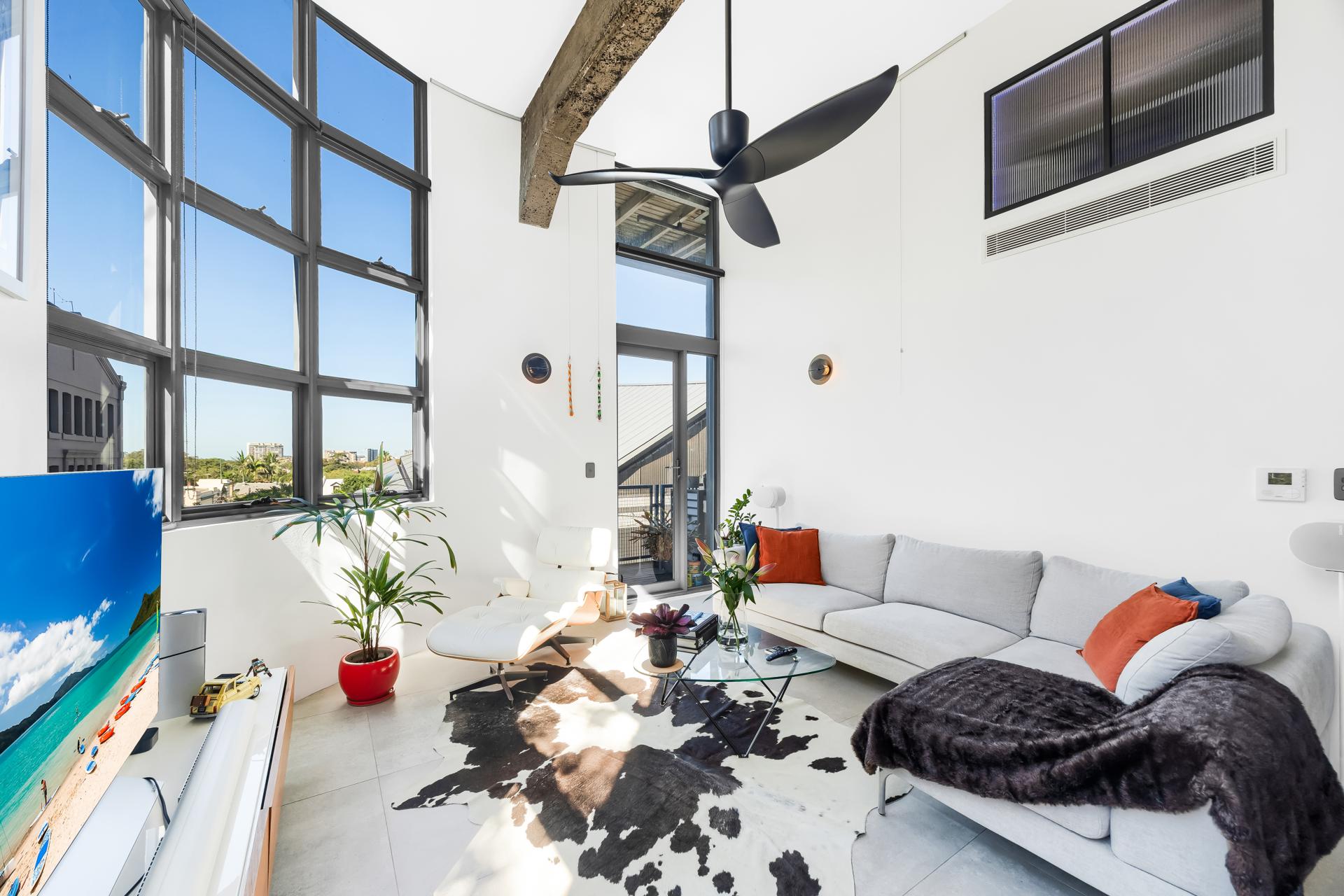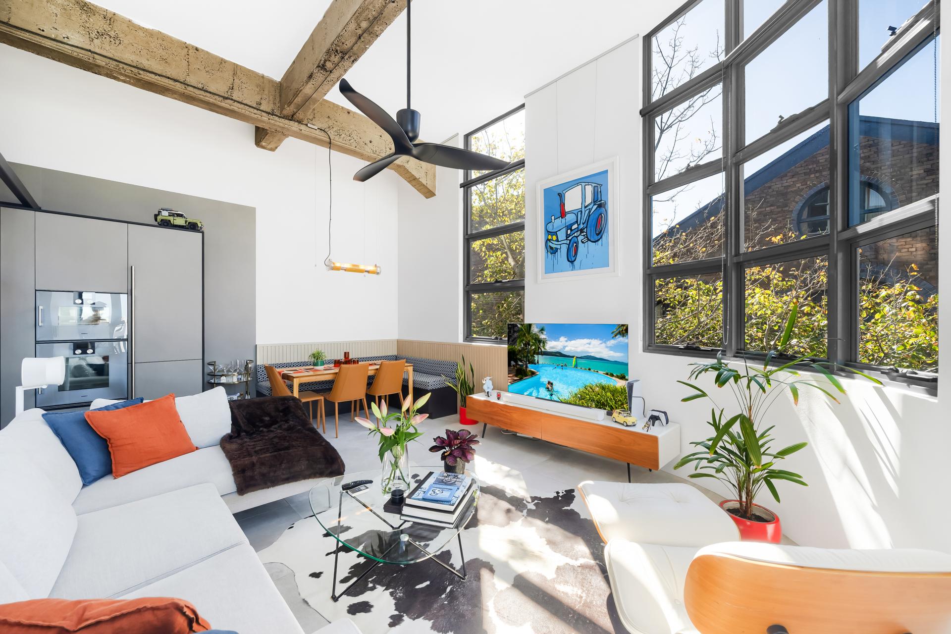 A striking New York-inspired warehouse conversion by De La Vega Architects, this sleek residence delivers bold design, soaring volume and refined contemporary finishes. Defined by exposed concrete beams, masonry walls and sculptural curves, the home balances raw industrial character with elevated, liveable luxury. Bathed in natural light, open-plan interiors extend to a full-length balcony with distant views towards Botany Bay, while carefully selected materials - from porcelain bench tops to tiled floorings and pure wool carpets - create a layered, tactile living environment.