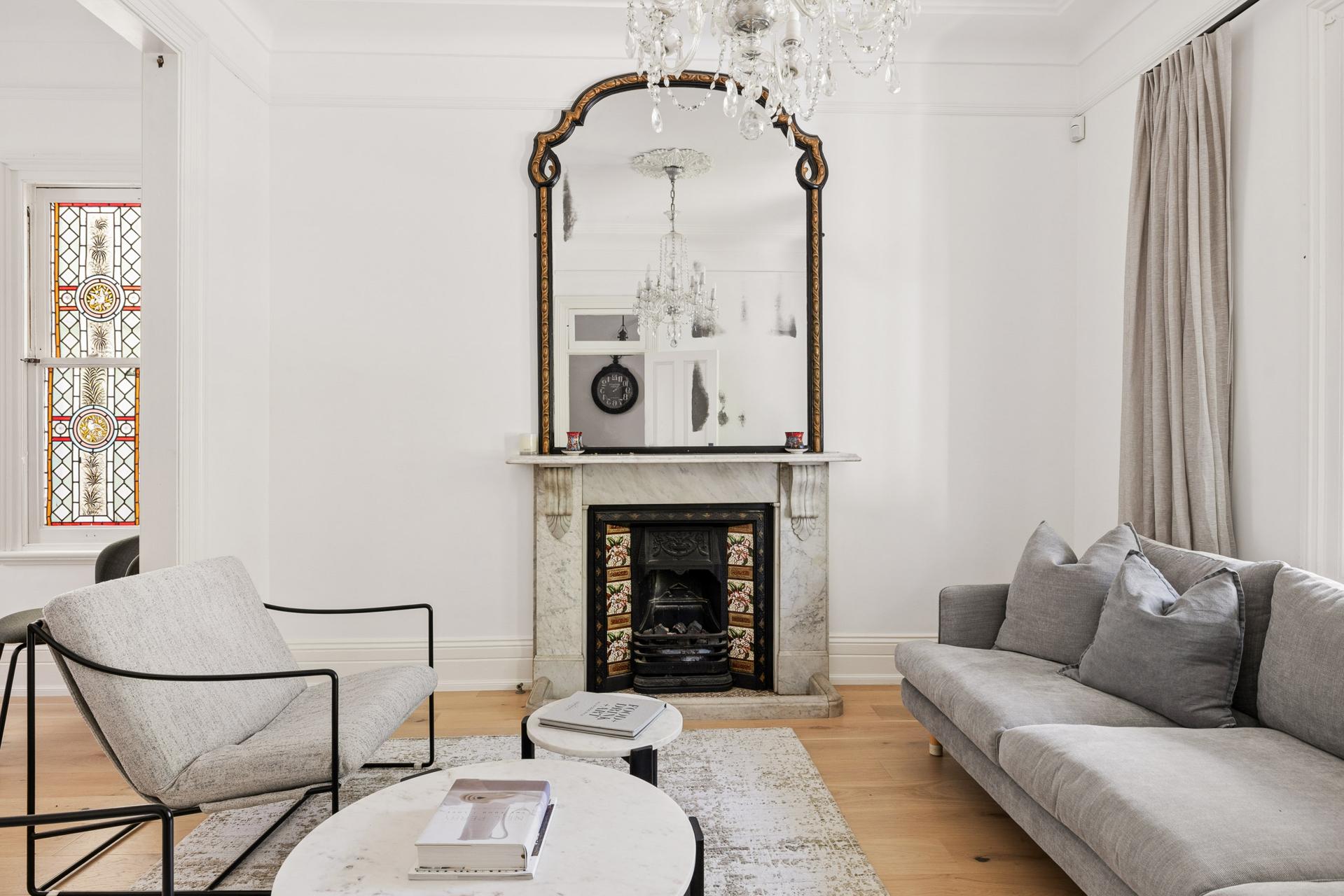 - Marble fireplaces, leadlight, chandeliers